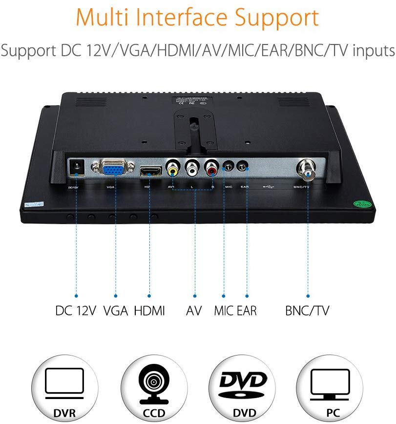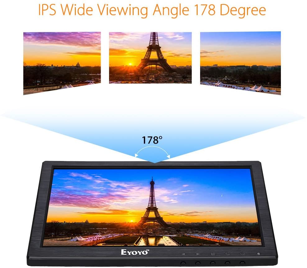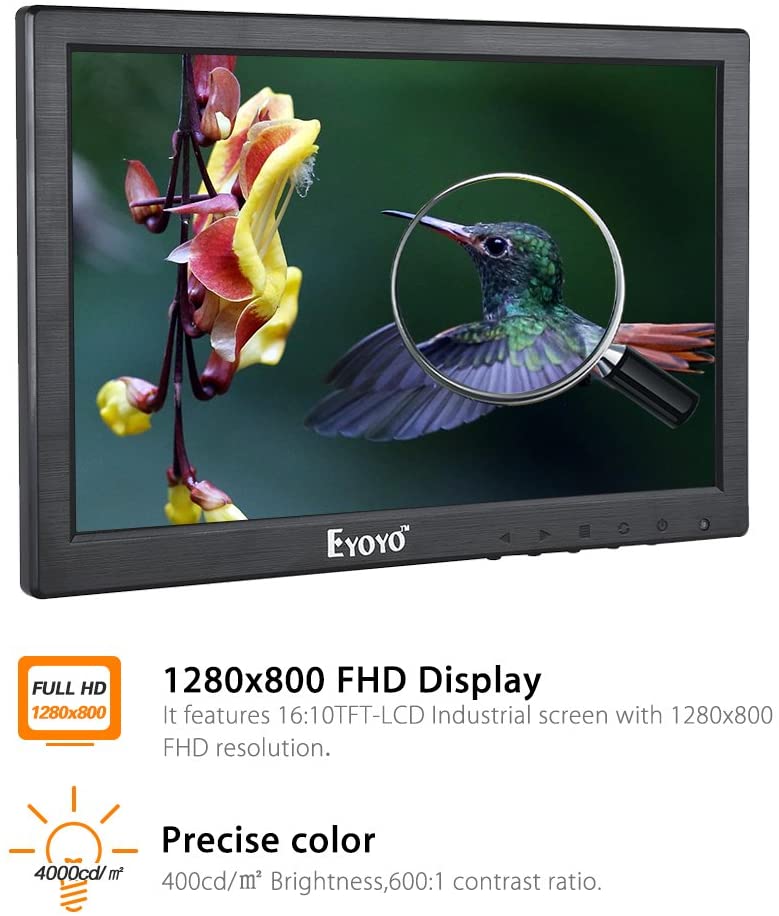 Eyoyo 10 Inch IPS LCD Monitor 1280x800 Resolution Support HDMI VGA BNC AV Input for PC TV Security Display(10 inch)