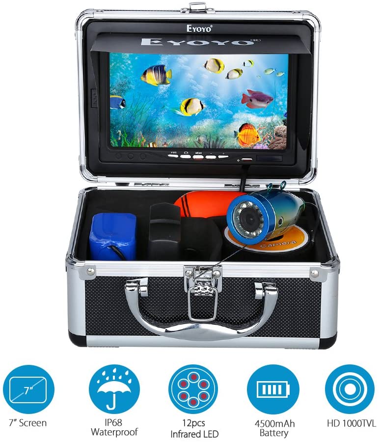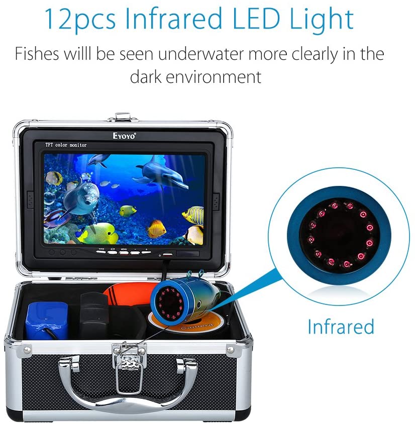 Eyoyo Ice Fishing Camera 7 inch LCD Monitor 1000TVL Camera 15m/30m/50m Cable 12pcs IR Infrared LEDs