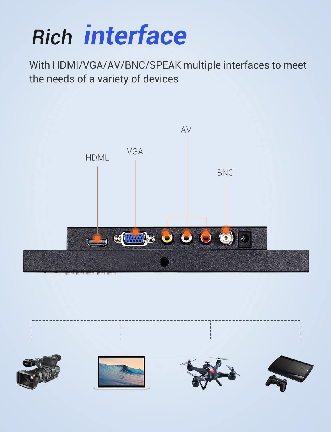 Rich Interface Monitor: Our small monitor with HDMI/VGA/AV/BNC/SPEAK multiple interfaces input, it is best suitable for PC, TV, CCTV, Camera, Security, computer, drone, Raspberry Pi, microscope and so on.