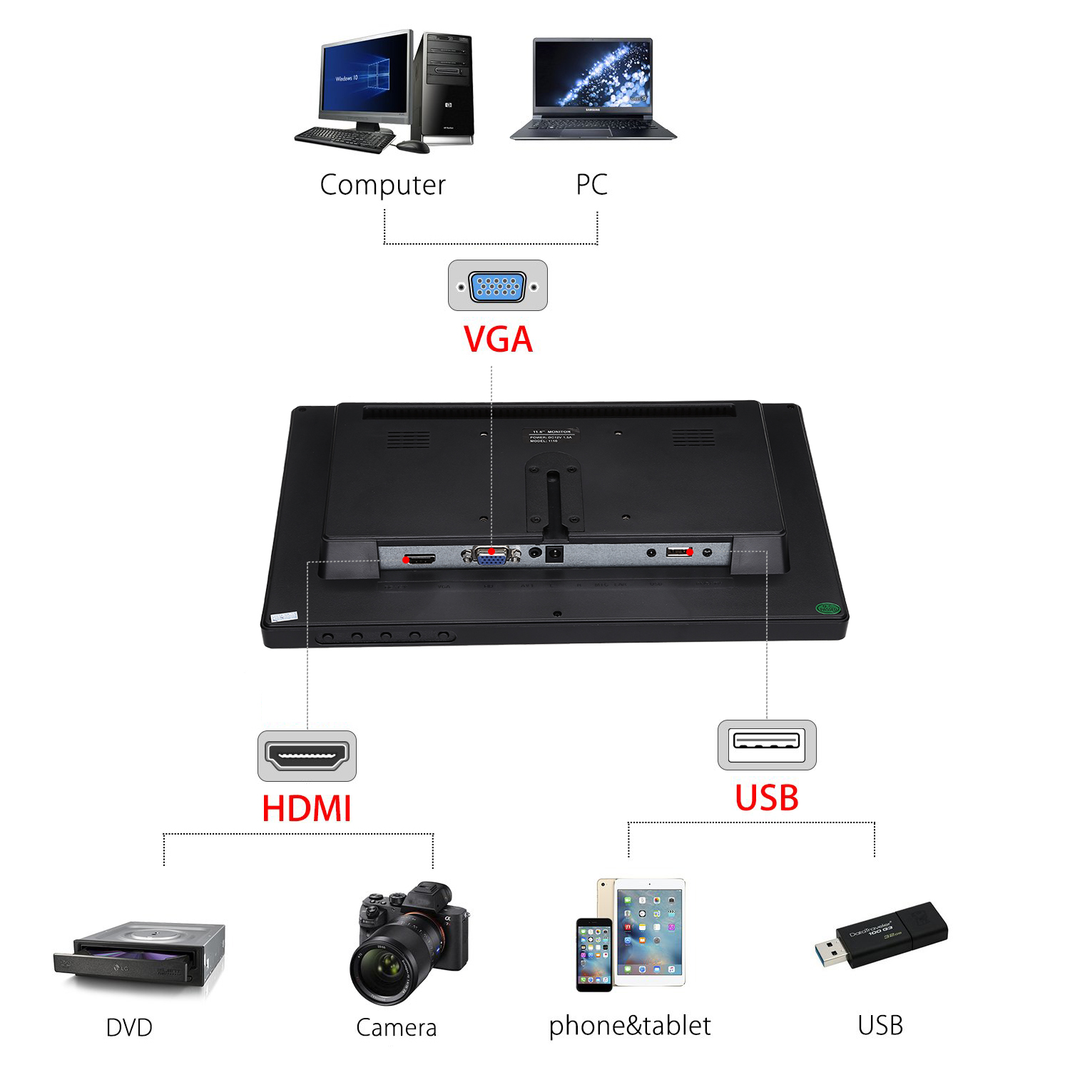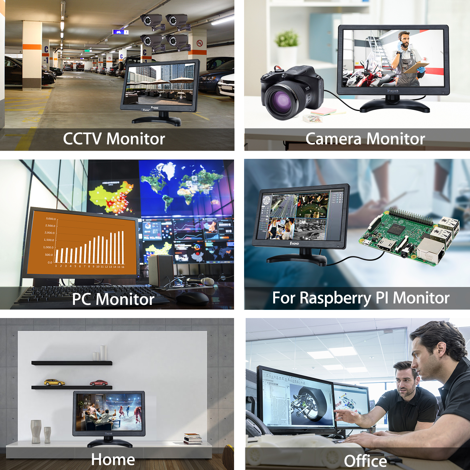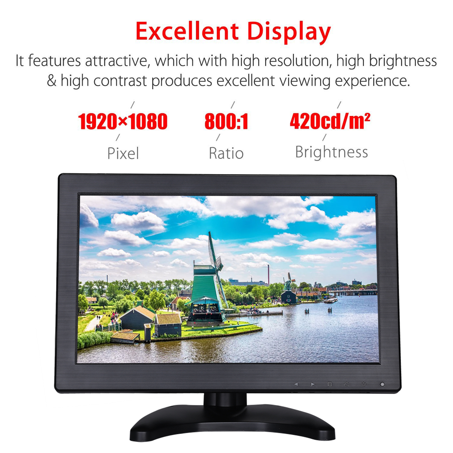 Eyoyo EM12Q 11.6” HD LCD IPS monitor, with HDMI/VGA/USB interface, is optimized for the finest 1920*1080 pixel image and color quality. IPS viewing technology is for an ultra-wide viewing, from almost any angle. This approach extends to the sturdy stand and slim profile without compromising style in ensuring stability and durability.