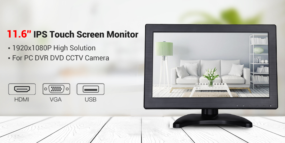 Eyoyo EM12Q 11.6" IPS 1920*1080 Touch Screen HDMI Monitor USB VGA Display for CCTV PC
