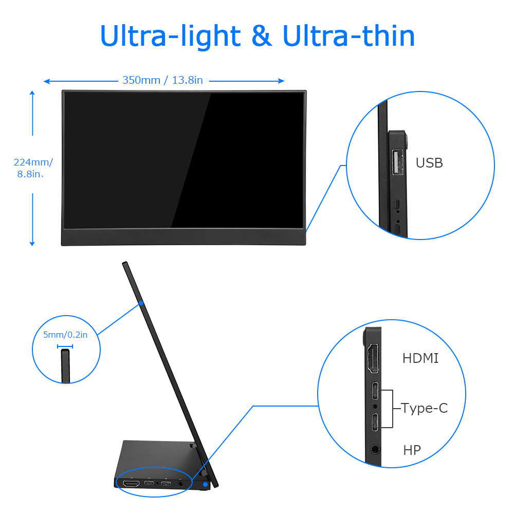 2.Portable second monitor: Split-screen mode is available and it is compatible with Macbook pro/Surface pro,ect. Double screen display brings more efficient for working or entertainment experience.