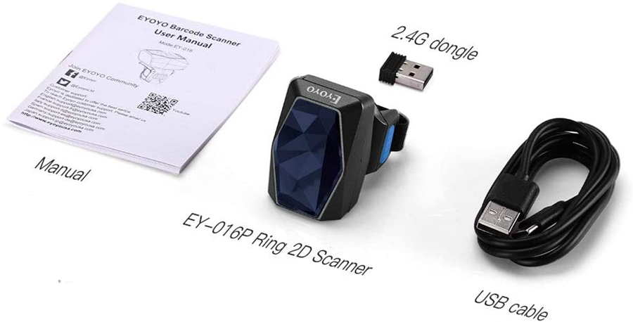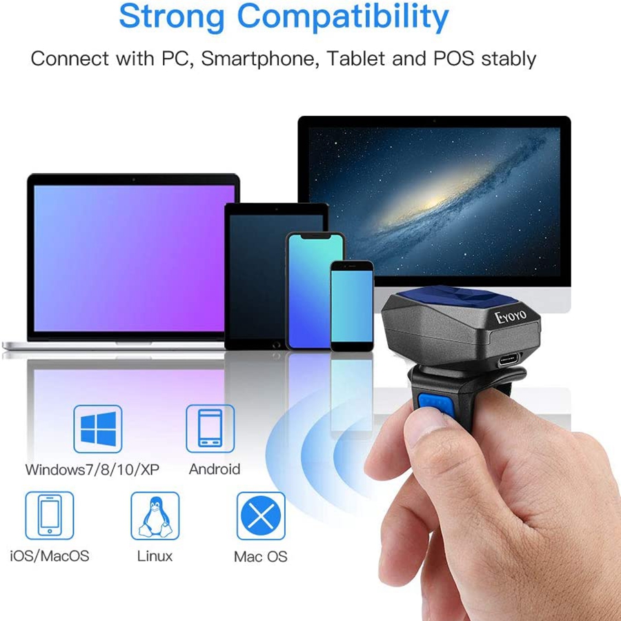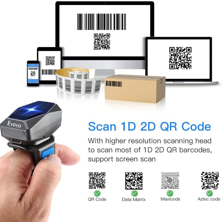 Eyoyo EY-016P Upgraded Eyoyo 2D Ring Barcode Scanner Bluetooth, USB Wired & 2.4G Wireless & Bluetooth Mini Wearable Bar code Scanner