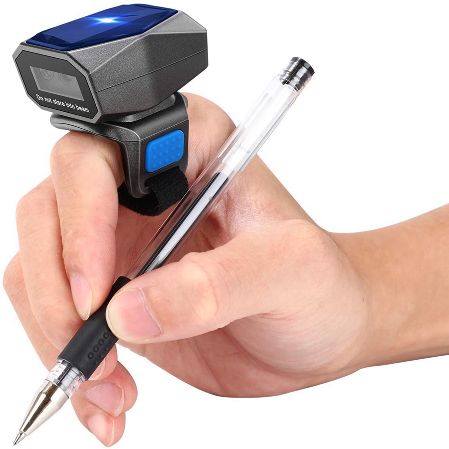 Wearable ring design to wear this finger barcode scanner on the finger, after you can scan barcode data, then record it in time. extremely free your hand and greatly improve your work efficiency.