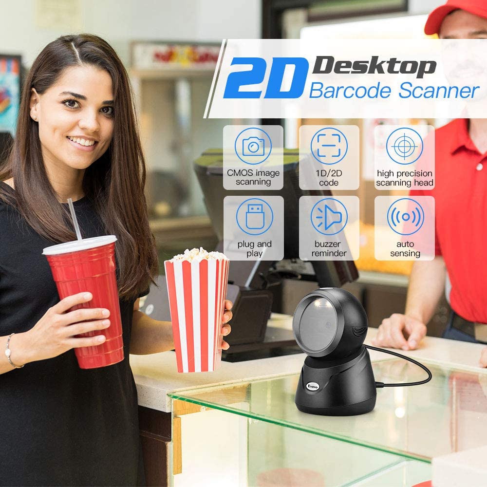 Eyoyo EY-6052 2D Desktop Barcode Scanner, Automatic Image Sensing Omnidirectional Hands-Free Scanner with USB Connection, Scan 1D QR Barcodes from Screen Barcode Reader for Supermarket Library Retail Store