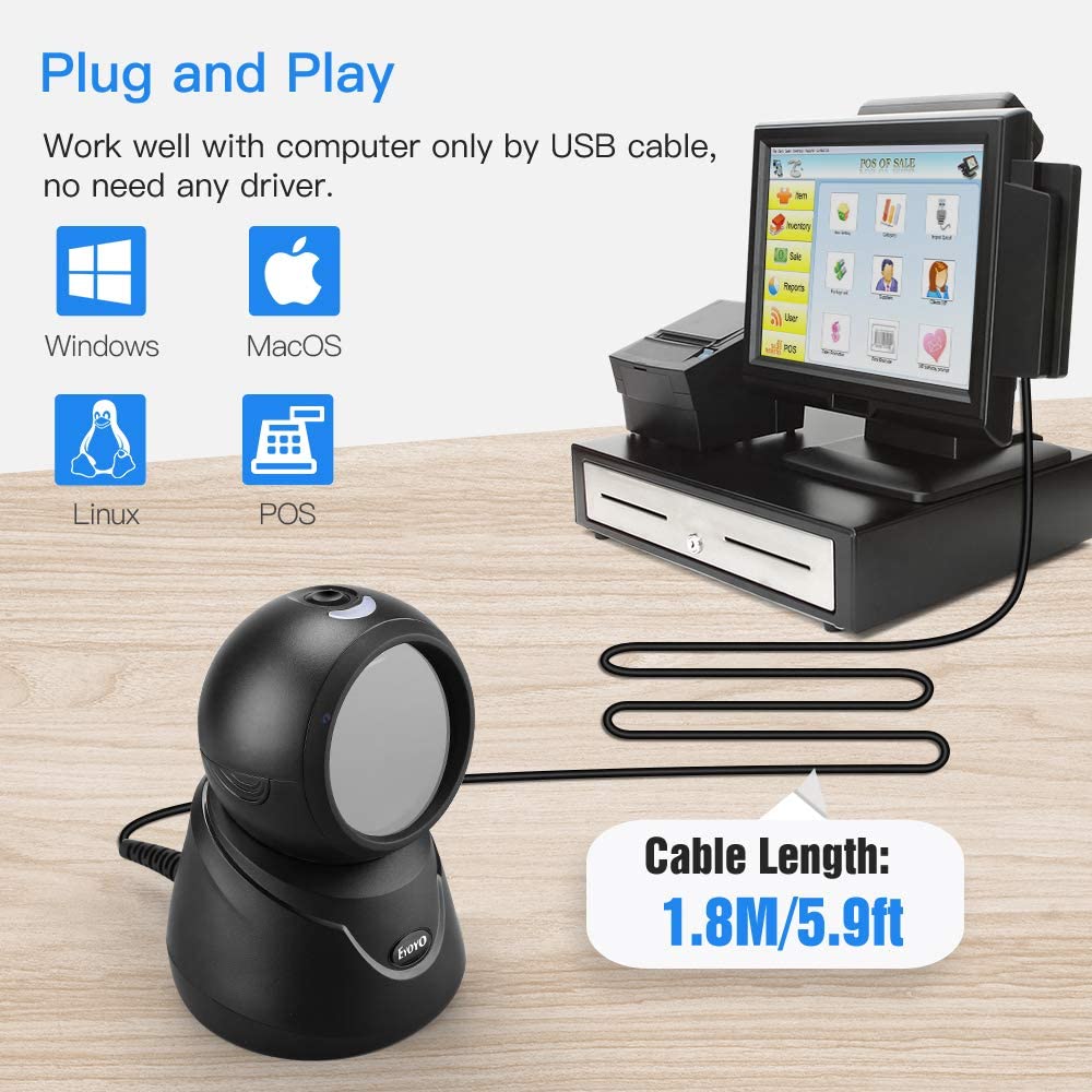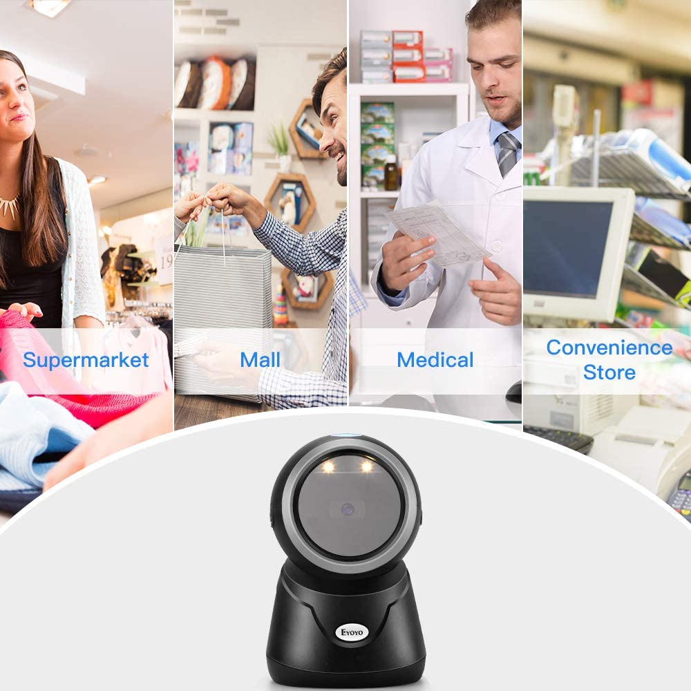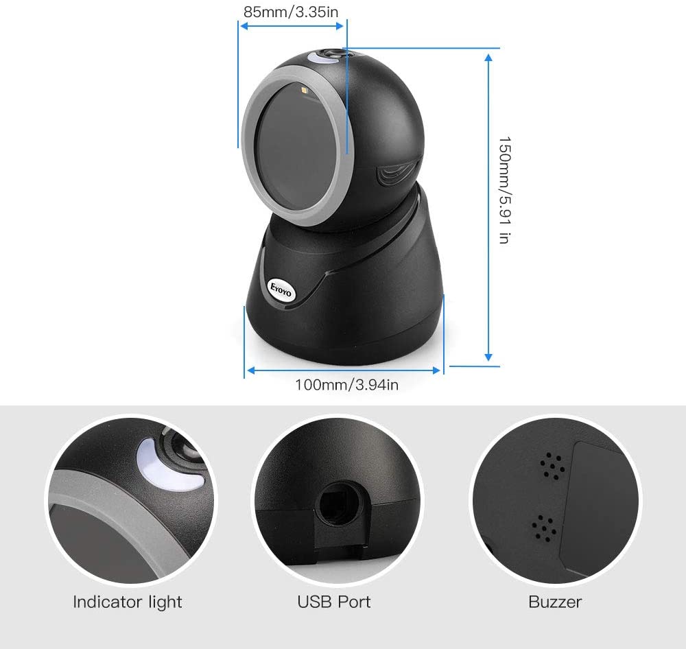 Eyoyo EY-6052 2D Omnidirectional scanner Desktop Barcode reader, Automatic Image Sensing Omnidirectional Hands-Free Scanner with USB Connection, Scan 1D QR Barcodes from Screen Barcode Reader for Supermarket Library Retail Store