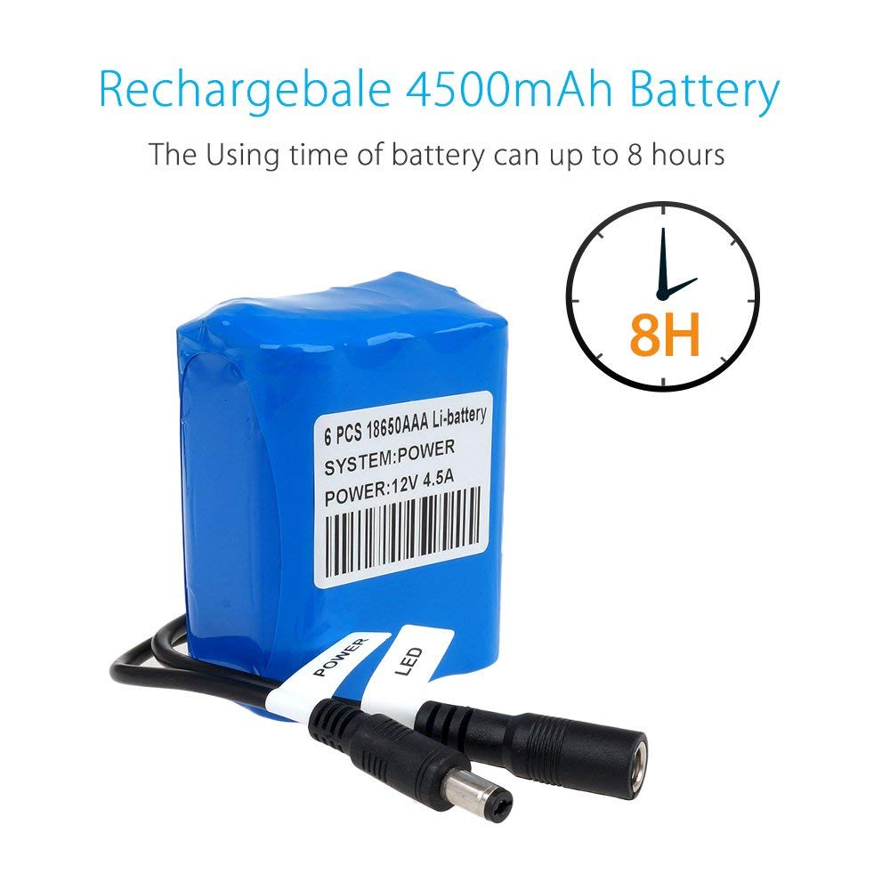 Answer 3,The battery for 7 inch fishing camera is about 4500mAh. It can be last 6-8 hours after full charged.