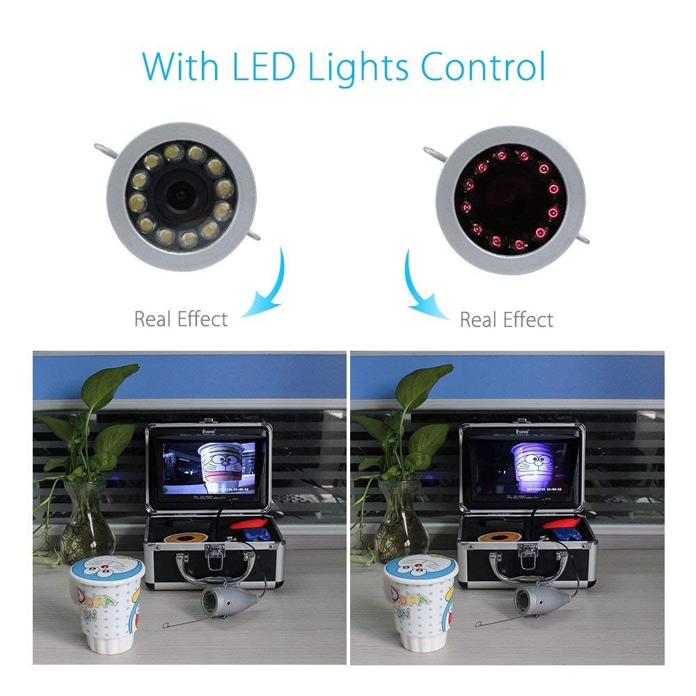 Eyoyo 7 inch full silver fish finder you are watching now is the Newest popular, fashional, good looking and convenient Underwater fishing Video Camera System.It not only has a color screen, but also has a high definition camera which has 1000 TV lines.There are 12pcs infrared IR high-power lights for camera light source, you can see the fish more clearly in the dark night. what's more, the camera light degree can be turned off as your like. with DVR Recording Function,Free 8GB SD Card Included.
