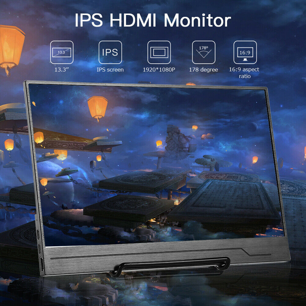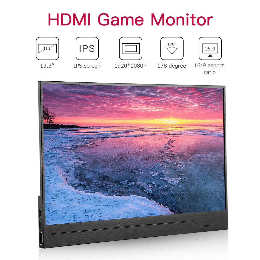 Portable 13.3" IPS HDMI USB-C Monitor 1920x1080 for Sam sung WiiU Switch PS4 PS3
